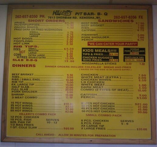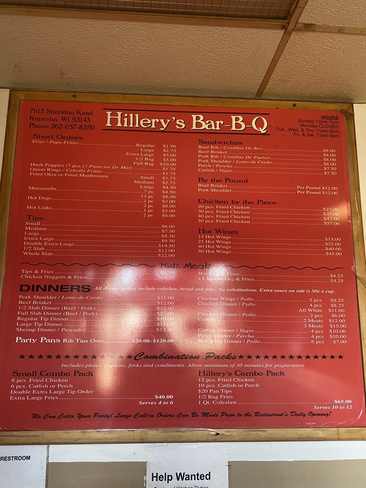 Hillery's Kenosha Bar-Bq Menu (Update 2025)